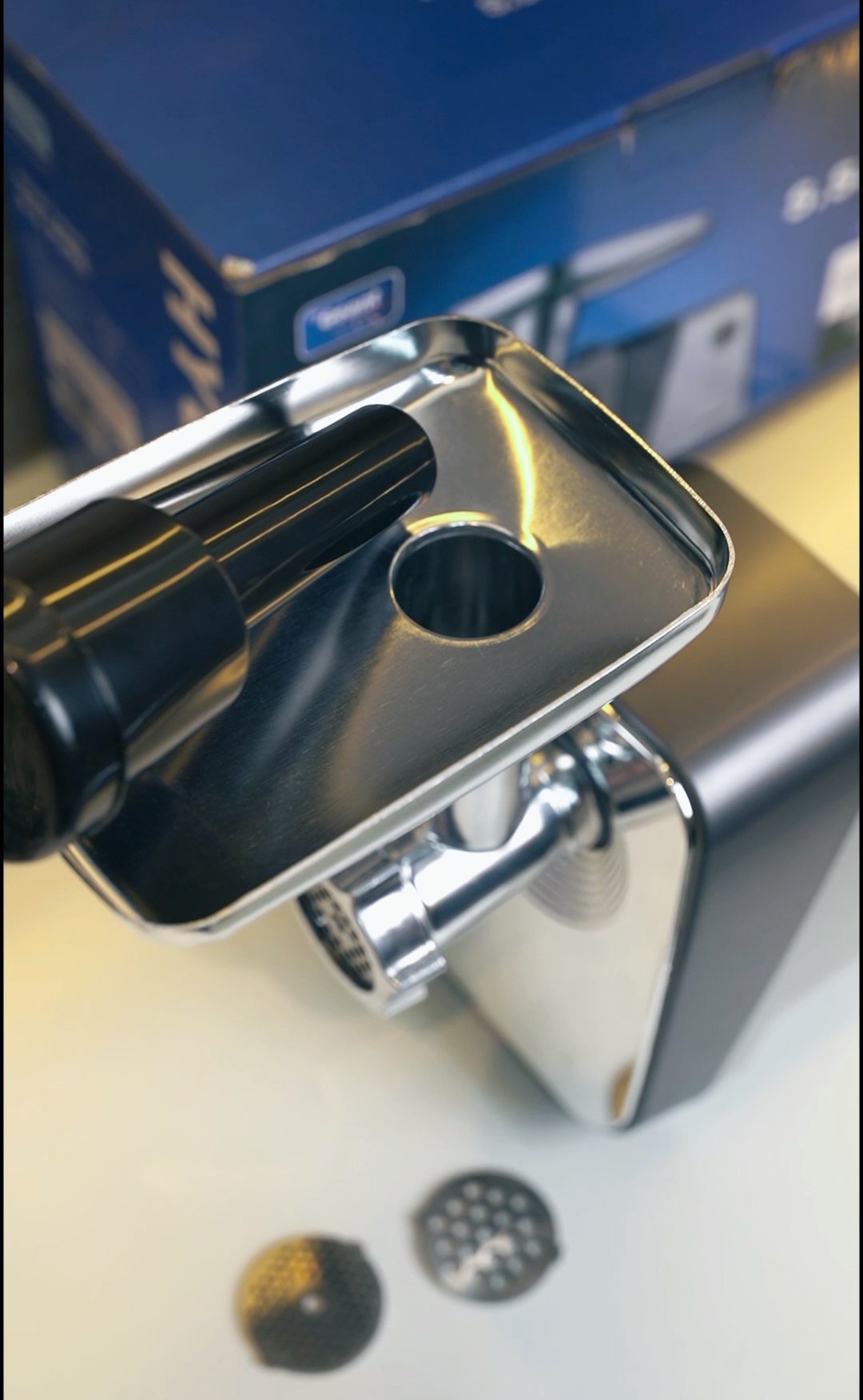 ملحقات متعددة الاستخدامات: تأتي المفرمة مع مجموعة من الإكسسوارات (شفرات وأقراص) تسمح لك باختيار درجة خشونة اللحم (ناعم أو خشن) حسب نوع الطبق الذي تحضرينه.